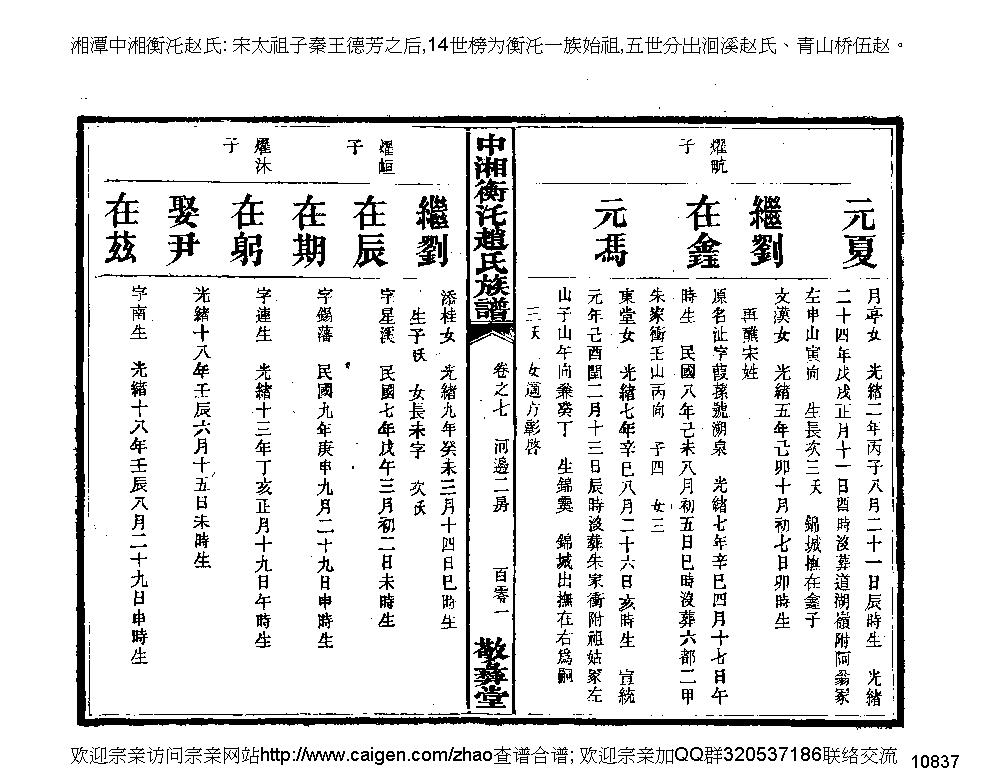 赵载鑫,字葭蓀,号溯泉 载鑫,字葭蓀,号溯泉,原名沚 赵在辰,字星溪 在辰,字星溪 赵在期,字锡藩 在期,字锡藩 赵在躬,字连生 在躬,字连生 赵在兹(上加草),字南生 在兹(上加草),字南生