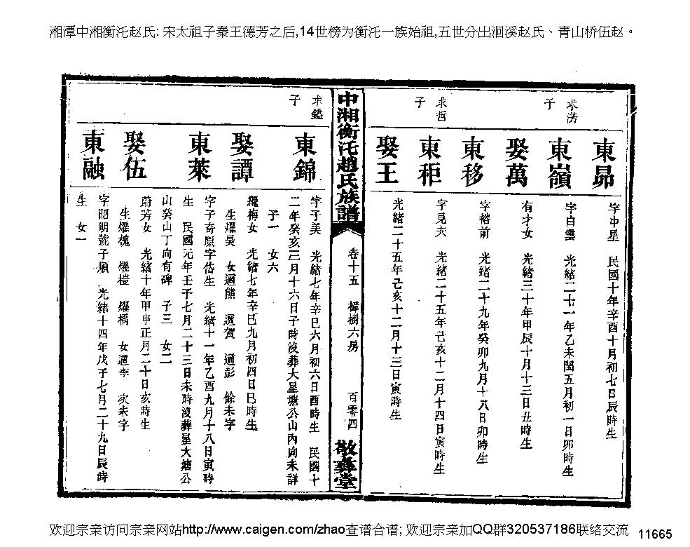 东融公乃求镒公之三子,字昭明,号子顺,清光绪十四年(1888)戊子七月二十九日辰时生。娶王氏,王顺昭公之女,乃吾继曾祖母,清光绪十五年(1889)已丑五月十一日亥时生。生有一女,早夭。