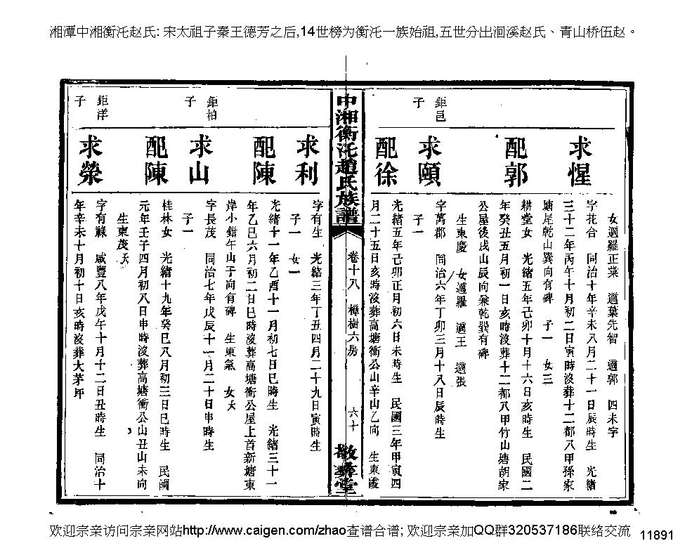 赵求惺,字花合 求惺,字花合 赵求颐,字萬郡 求颐,字萬郡 赵求利,字有生 求利,字有生 赵求山,字长茂 求山,字长茂 赵求荥,字有禄 求荥,字有禄