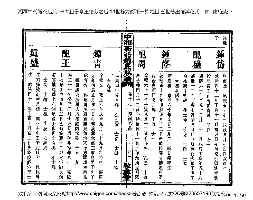 赵钟岱,字东華 钟岱,字东華 赵钟嶐,字庆云 钟嶐,字庆云 赵钟青,字松友 钟青,字松友 赵钟盛,字绍孙,号衡村 钟盛,字绍孙,号衡村