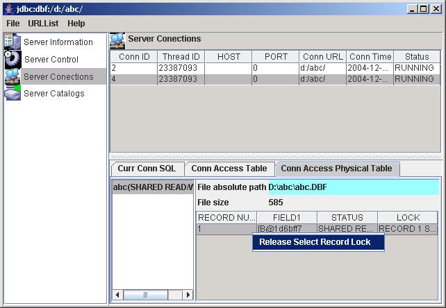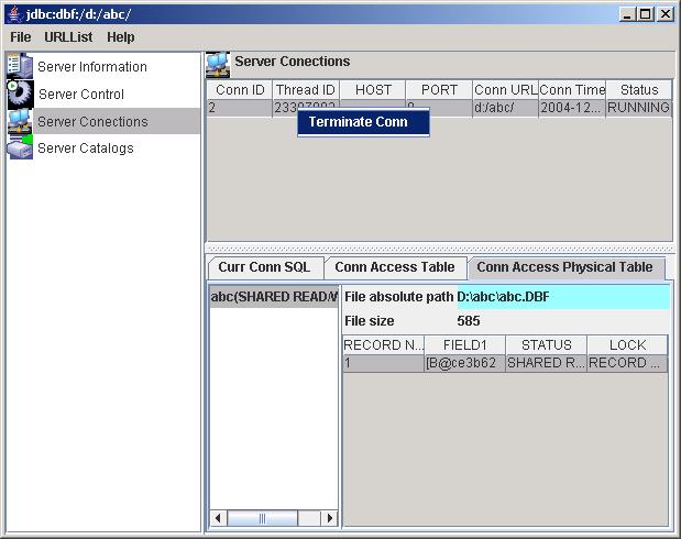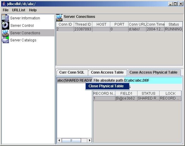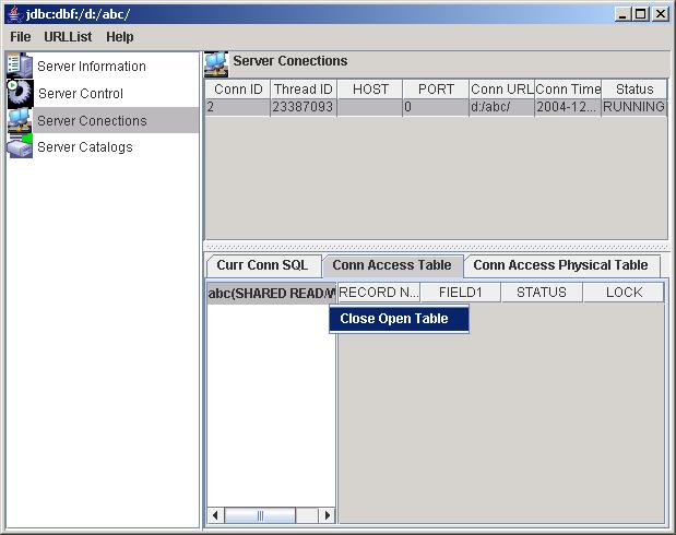 How to start this DBAdmin program? For example,if you have download the HXTT Word 4.2 package whose filename is Word_JDBC42.jar and save it to c disk,you can run it by java -classpath c:/Word_JDBC42.jar com.hxtt.sql.admin.Admin you will see this window! In default ,this program will product a file named urlconfig.properties locate in user.home enviroment variable. You can assign the hxtt.urlconfig environment variable to assign the urlconfig.properties path.For example, java -classpath c:/Word_JDBC42.jar -Dhxtt.urlconfig=c:/urlconfig.properties com.hxtt.sql.admin.Admin This left list is the configed url list,click a url in this list ,you can see this url config information at the right window! ![]() This url name is used to represented this url config information; this url information text is this url information for start,stop,manage and monotor url information, this url information must be a correct embedded jdbc url or remote jdbc url(this sample describes only an embedded url service, if you wish to access remote, you should use remote url service, for instance, jdbc:word://localhost:3099//usr/datadir); this auto start is used to assign if this remote url start when this dbadmin program start,it is general used to start the hxtt java database server after start the rmi service ! this log information is used to assign if log this server access information to a disk file ; Click this View Monitor button,you can view the select url monitor window! ![]() This Server Information item in the left list is used to show the general information about this selected url! If the server have not started,you can click the right image to start this server, after start this server,you can see four item at this left list! This Server Catalogs is used to build a connection and execute some sql at the server,you can see the result at this right-bottom window! ![]() This Server Controls is used to monitor the physical file which is now accessed by the server! กก ![]() This Server Connections is used to monitor the current connections connected this server and their activity. There are a connection list at the right top window to show the current connections! At the right bottom window,there are three tabpanes! The first is used to show the current sql sentence executed by the selected connection ; this second is used to show the logical table accessed by the selected connection; this third is used to show the physical table accessed by the selected connection; ![]() At the connections list,select a connection and right-click mouse ,you can close a connection at the popup menu! ![]() At the accessed logical table list ,select a item and right click mouse,you can close the this logical table opened by this selected connection! ![]() At the accessed physical table list ,select a item and right click mouse,you can close the physical table ,but you should be careful,because this operation will close the physical table no matter this table is accessed by other connection! ![]() It a physical table is locked a lot of records and you can only release some records locks,you should select a item at the physical table record locks list and right click mouse,click the close menu to release the selected record lock,and redo this step to release other record lock until you don't want to do so. ![]() |